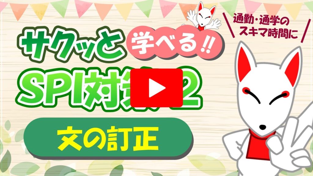 7.文の訂正 /「動画で学ぶ!!SPI問題集」 2025.10.062025.10.24 目次 例題(解説)練習問題(解説) 例題(解説) ▶YouTubeで確認する〔1〕の解説 ▶YouTubeで確認する〔2〕の解説 練習問題(解説) ▶YouTubeで確認する〔1〕の解説 ▶YouTubeで確認する〔2〕の解説
