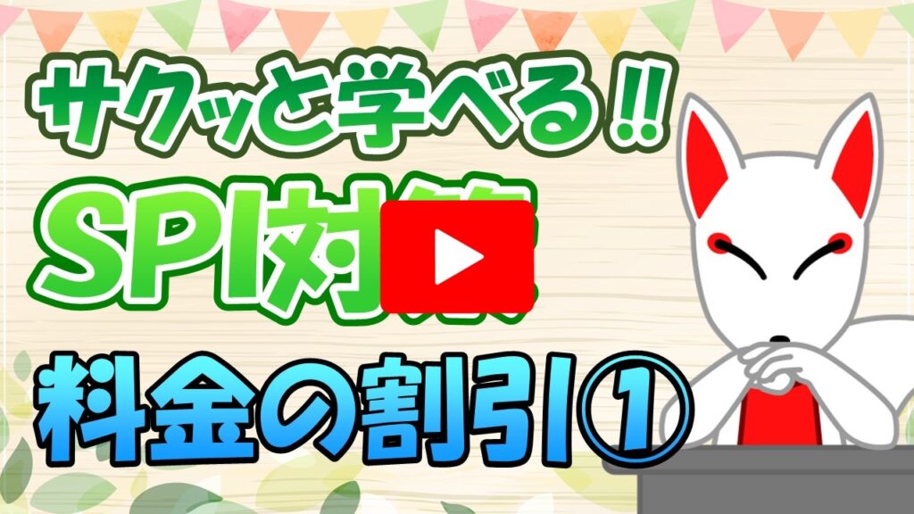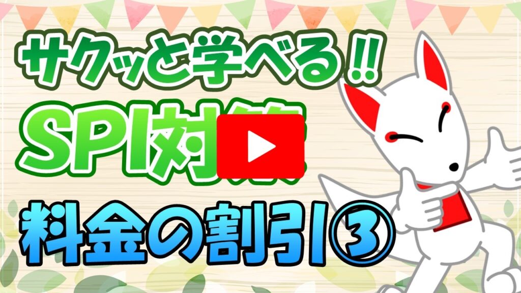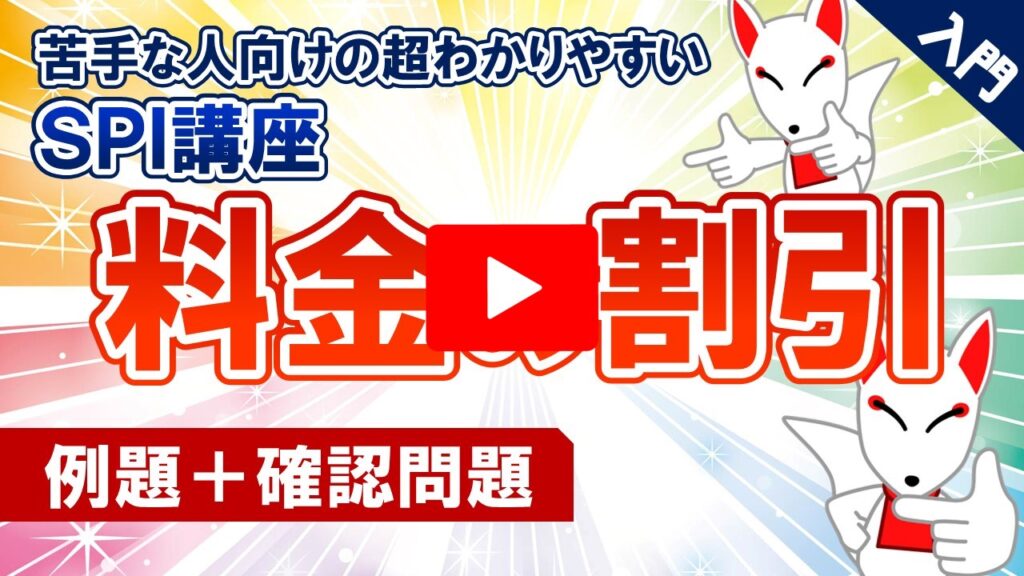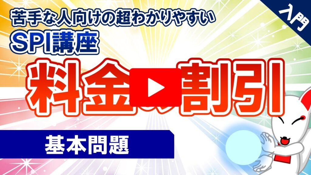 7.料金の割引 /「動画で学ぶ!!SPI問題集」 2023.08.242023.08.29 目次 例題〔1〕の解説〔2〕の解説〔3〕の解説〔4〕の解説練習問題〔1〕の解説〔2〕の解説〔3〕の解説〔4〕の解説 例題 〔1〕の解説 ▶YouTubeで確認する 〔2〕の解説 ▶YouTubeで確認する 〔3〕の解説 ▶YouTubeで確認する 〔4〕の解説 ▶YouTubeで確認する 練習問題 〔1〕の解説 ▶YouTubeで確認する 〔2〕の解説 ▶YouTubeで確認する 〔3〕の解説 ▶YouTubeで確認する 〔4〕の解説 ▶YouTubeで確認する
