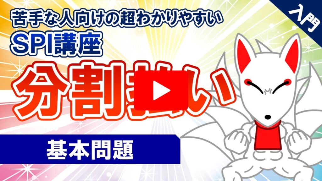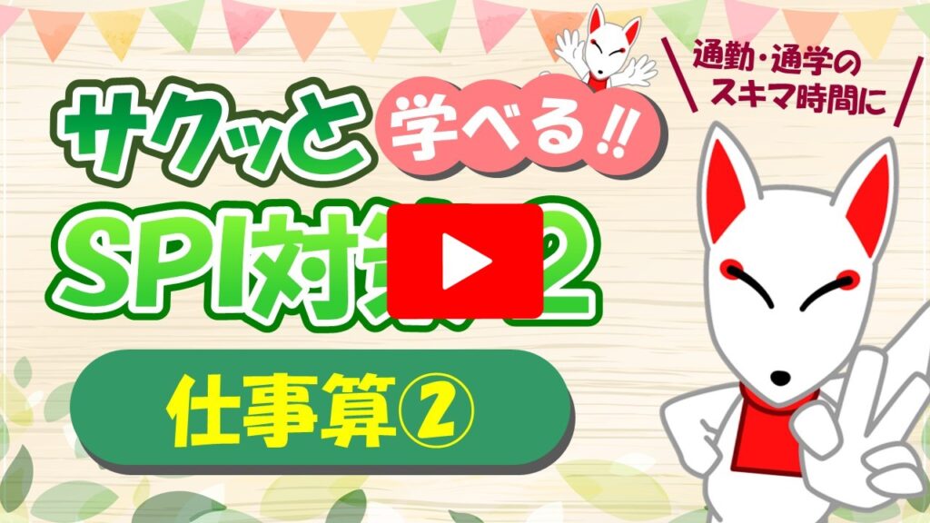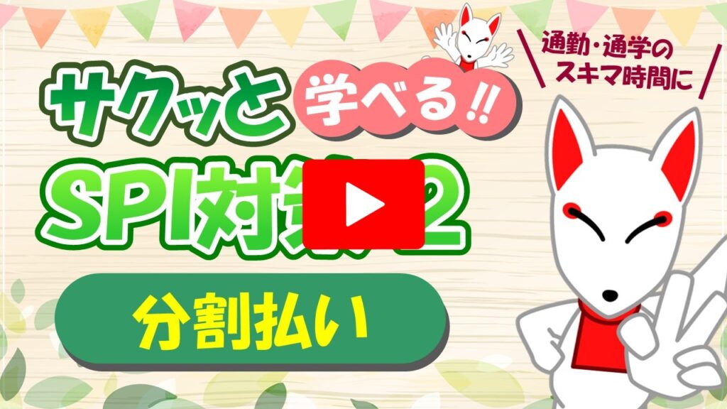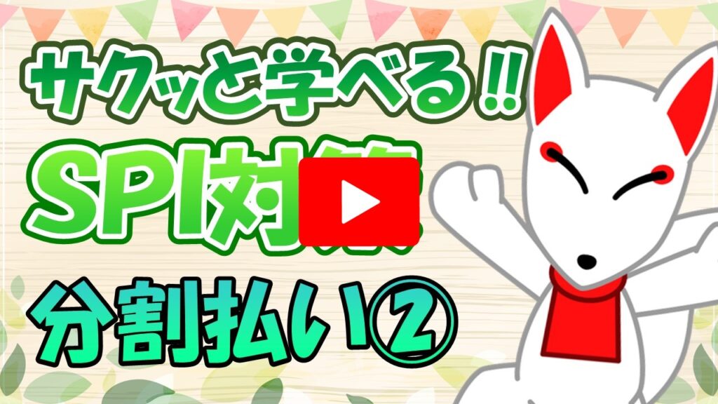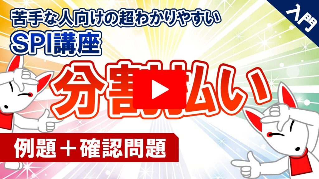 9.分割払い・仕事算 /「動画で学ぶ!!SPI問題集」 2023.08.252023.09.30 目次 例題〔1〕の解説〔2〕の解説〔3〕の解説練習問題〔1〕の解説〔2〕の解説〔3〕の解説〔4〕の解説 例題 〔1〕の解説 ▶YouTubeで確認する 〔2〕の解説 ▶YouTubeで確認する 〔3〕の解説 ▶YouTubeで確認する 練習問題 〔1〕の解説 ▶YouTubeで確認する 〔2〕の解説 ▶YouTubeで確認する 〔3〕の解説 ▶YouTubeで確認する 〔4〕の解説 ▶YouTubeで確認する