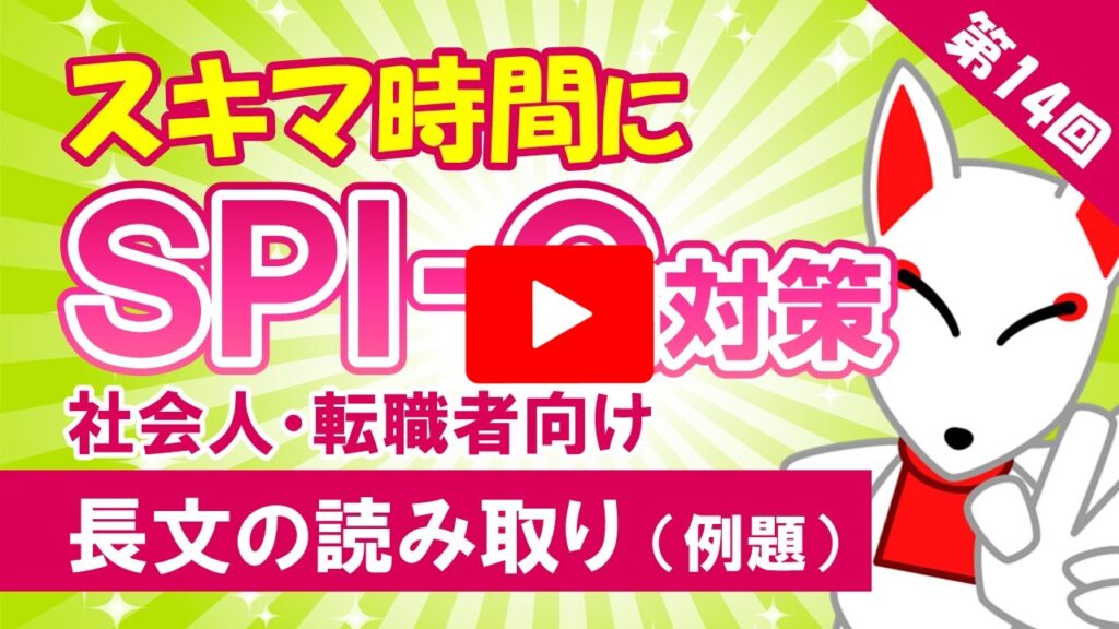 16.資料・長文の読み取り /「動画で学ぶ!!SPI問題集」 2023.08.252023.08.31 目次 例題〔1〕の解説練習問題〔1〕の解説 例題 〔1〕の解説 ▶YouTubeで確認する 練習問題 〔1〕の解説 ▶YouTubeで確認する